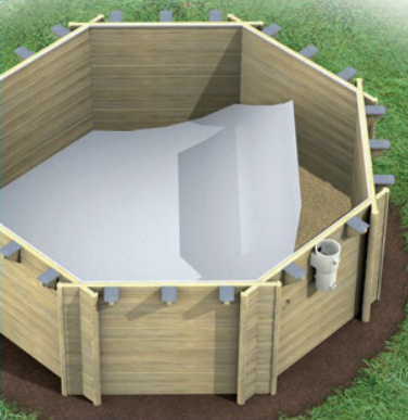 Детский бассейн Pistoche (Пистош) поставляется в 2 коробках. В первой упаковке (1/2) находятся: регулируемая по высоте система фильтрации, плёнка синего цвета толщиной 0,5 мм, гайки, болты и шурупы, инструкция по сборке, лента для установки покрытия, регулировочные прокладки для крепления плёнки. Во второй упаковке (входит в заявленную цену) находятся все деревянные элементы конструкции (корпус, бортик), профили из ПВХ и алюминиевые профили для шарниров, приспособления для крепления покрытия и плёнки, вал вместе с защитным покрытием и его планкой