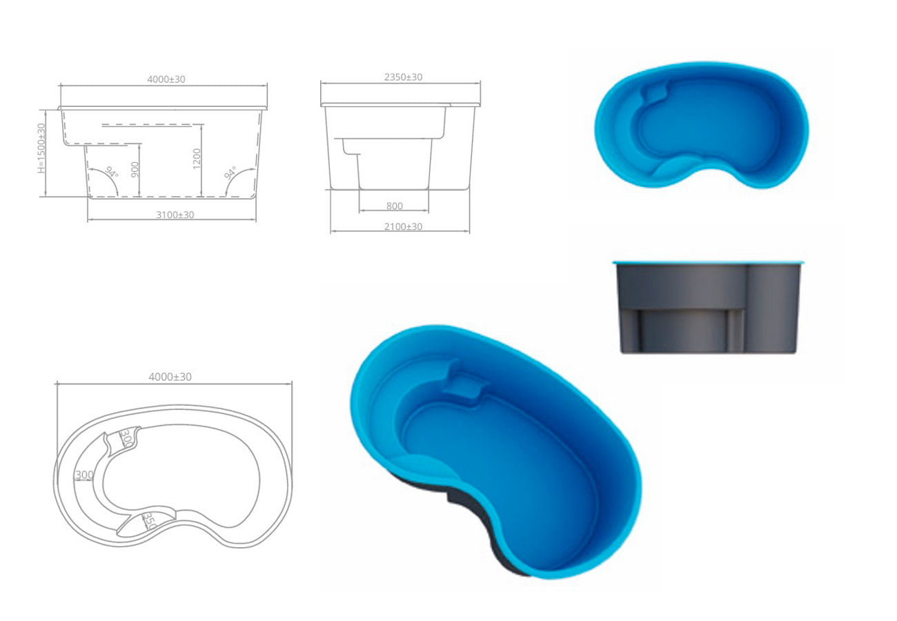 Оптима — компактный семейный бассейн с необычным дизайном, который идеально подойдет для небольшого участка или помещения. Бассейн Оптима имеет компактные размеры и напоминает изогнутый овал. Кроме необычной формы, внимание сразу привлекают полка-сиденье. Она образует три уровня и совмещает функции лестницы и зоны отдыха. Чтобы получить от купания максимальный расслабляющий эффект, полку-сиденье дополняют гидромассажем. Эту процедуру предлагают в спа-центрах и санаториях. Но зачем куда-то ехать, если водный массаж воды можно сделать у себя на даче! Для установки бассейна Оптима потребуется всего 10 квадратных метров. Поэтому модель часто выбирают для участков и помещений с ограниченным свободным пространством. Естественные природные очертания чаши хорошо сочетаются с загородным пейзажем и смягчают строгие линии в интерьере.