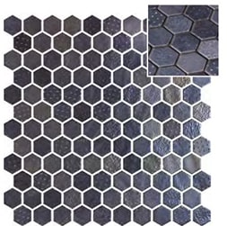 Hex Metal Blends - высококачественная переработанная стеклянная мозаика производства Испании. Отличный материал для отделки бассейна, а так же создания инсталяций и рисунков. Плитка морозостойкая не расстрескивается под действием низких температур, а также стабильна и устойчива к нагреванию при воздействии света и УФ-лучей. Не выгорает на солнце. Подойдет для отделки внутренних и наружных помещений и бассейнов.