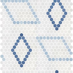 Hex Geo Patterns - высококачественная стеклянная мозаика производства Испании. Отличный материал для отделки бассейна, а так же создания инсталяций и рисунков. Плитка морозостойкая не расстрескивается под действием низких температур, а также стабильна и устойчива к нагреванию при воздействии света и УФ-лучей. Не выгорает на солнце. Подойдет для отделки внутренних и наружных помещений и бассейнов. Отнесен к 9 классу Мооса.