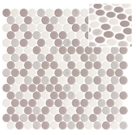 Система точечной подложки позволяет проклеить до 91% поверхности и сохранить до 27% времени при установке. Полная адаптируемость к любому типу поверхности: углы, изогнутые, неровные поверхности. За счет своей толщины, плитка скрывает затирку. С помощью Onix Penny можно создавать различные инсталяции, рисунки и формы.