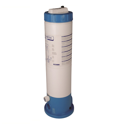 Дозатор брома. Изготовлен из ABS-пластика. С регулирующим вентилем, ручным клапаном, автоматическим клапаном Вентури и закручивающейся крышкой. Для бассейнов объемом до 45 м3 – дозатор Dossi-5, для бассейнов объемом до 90 м3 – дозатор Dossi-10. Соединения 1 ½”. Диаметр 200 мм.